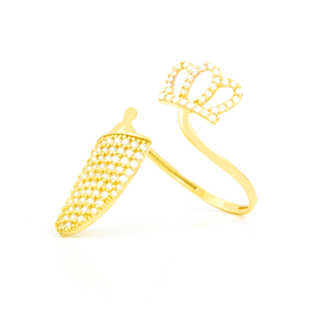Immerse yourself in the world of luxury and beauty with this exquisite ring, designed to highlight your femininity and express your inner elegance. Crafted from 18k gold, the crown design adds a touch of charm and sophistication, allowing your hands to speak the language of beauty and luxury. Shine and attract attention with a stunning piece that enhances your look with regal grace.